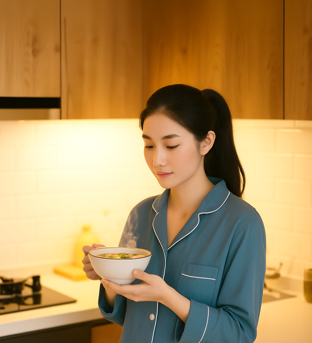 調養,並不是老一輩的迷信。它是一種「修復自己」的方式。這段時間,妳需要的不是高強度運動,也不是節食減重,而是讓氣與血慢慢回流的營養。飲食上喝一碗溫熱的調理湯品、搭配特定的草本茶飲,維持好的作息,讓自己每天睡好覺,幫助代謝、促進循環。
